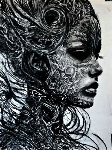 Black and white charcoal crushing paper